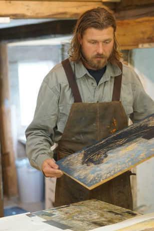 har han, sammen med sin familie, etablert bolig og verksted på et gammelt småbruk. Gården, med