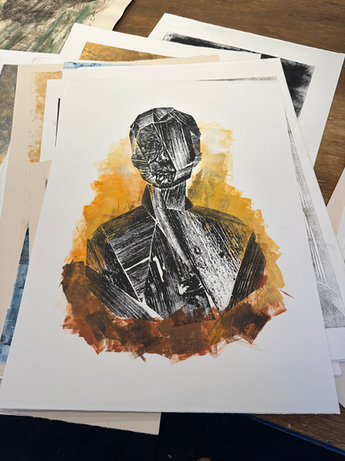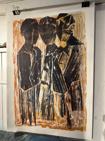 Åpent atelier med grafikk utstilling.